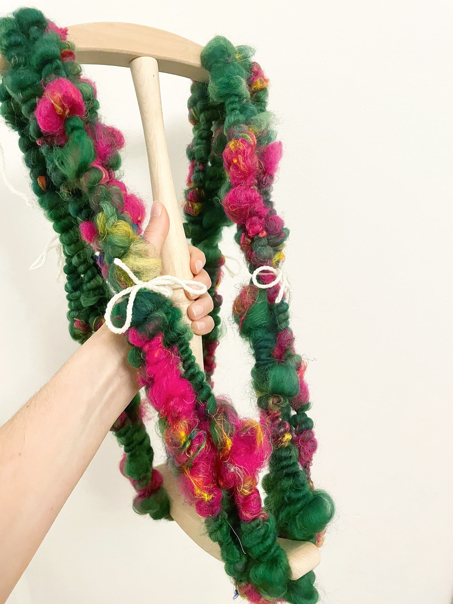 Through the process of weaving and spinning, Becky channels creativity and calmness into her work, creating with intuition and intention.